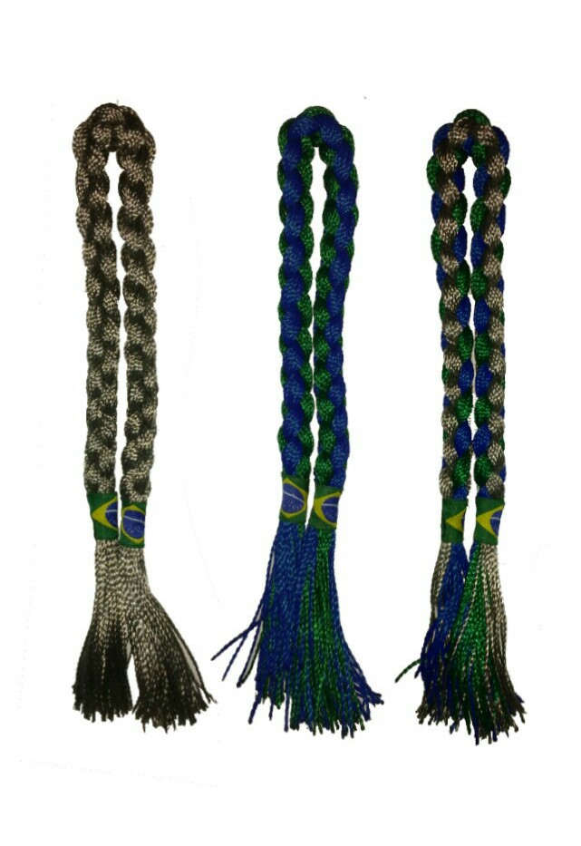 grau) 2ª Corda - Verde e Amarelo (aluno 2ª grau) 3ª Corda - Amarelo (graduado) 4ª Corda - Amarelo e Azul (monitor) 5ª Corda - Azul (instrutor) 6ª Corda - Verde, Amarelo e Azul (Professor) 7ª Corda - Verde, Amarelo, Azul e Branco (ContraMestre) 8ª Corda - (Verde e Branco (Mestre 1º Grau) 9ª Corda - Amarelo e Branco (Mestre 2º Grau) 10ª Corda - Azul e Branco (Mestre 3º Grau) 11ª Corda - Branco (Grã - Mestre)